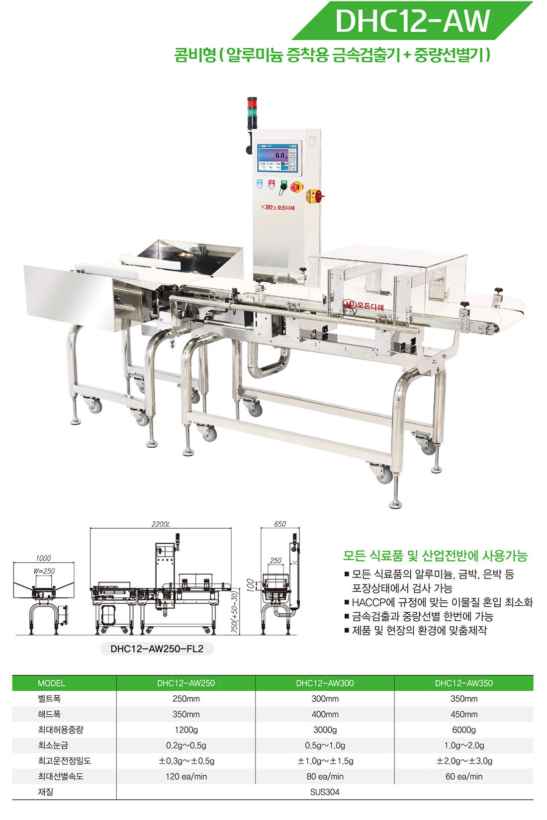 DHC12-AW 콤비형 (알루미늄 증착용 금속검출기+중량선별기)