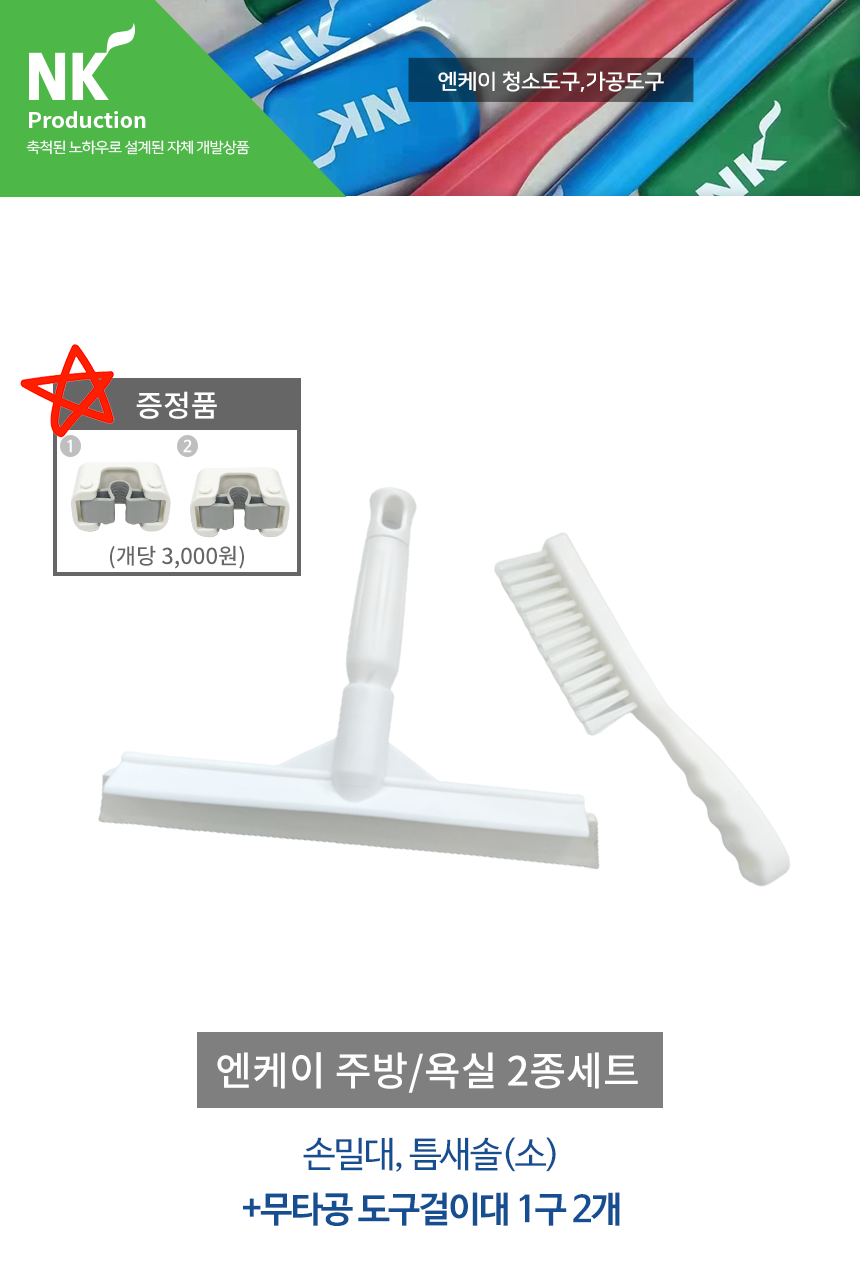 CT-113_132_189_엔케이_욕실화장실_2종_세트(손밀대_틈새솔(소)_무타공도구걸이1구(2개))