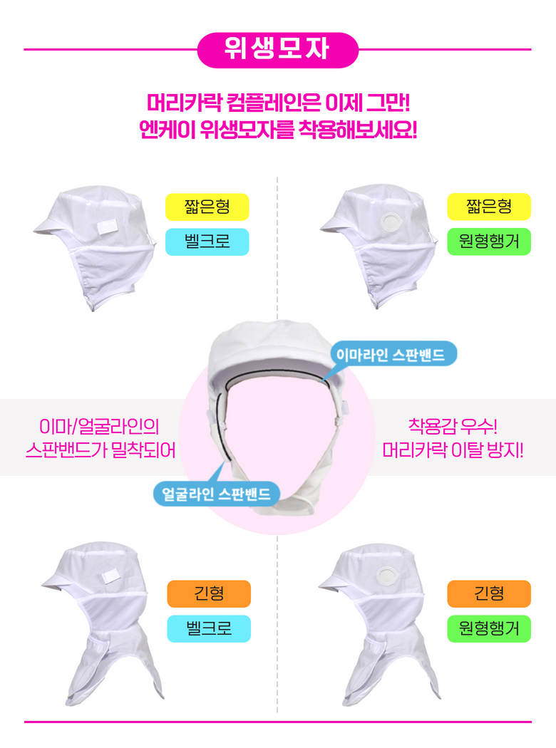 ST-126_엔케이 백색위생모자_(짧은형_밸크로타입)